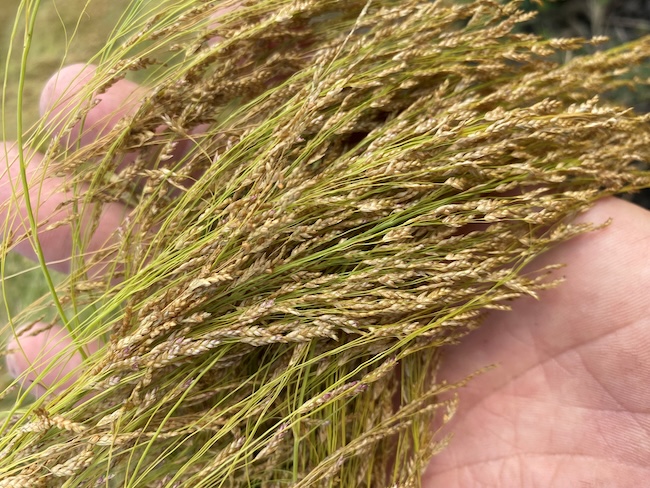 Starting research on teff in 2020, focusing on its value as a forage crop, Frey accidentally discovered that the harvested plants had developed grain. “It was getting towards the end of September and I rubbed it out in my hands and realized, oh, wow, there’s actually grain in here,” Frey says.